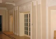 Декорирование стен молдингом, с помощью вертикальных элементов, поможет визуально увеличить пространство от потолка до пола. Например, имитация колонн, позволит увеличить высоту потолка.
