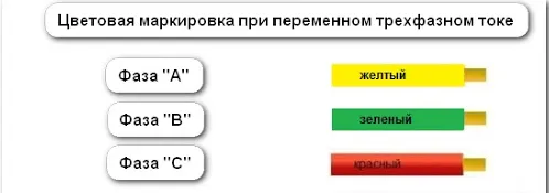 Трехфазное цветовое обозначение выглядит следующим образом: