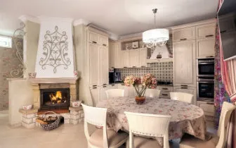 А вот камин лучше всего располагать как раз в обеденной зоне. Но, опять же, подальше от стола со стульями. Он должен быть немного поодаль, чтобы сидящие за столом могли его видеть: это красиво и уютно.