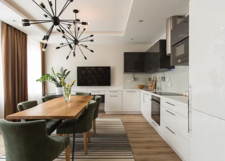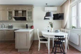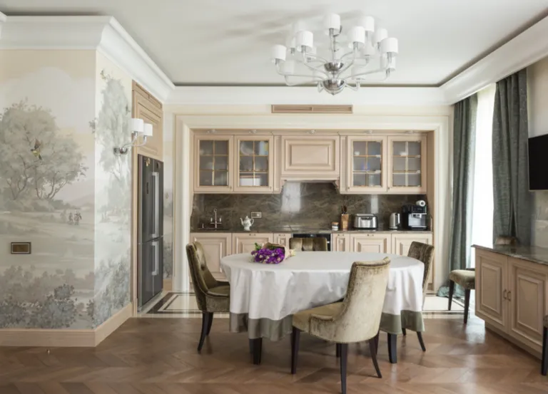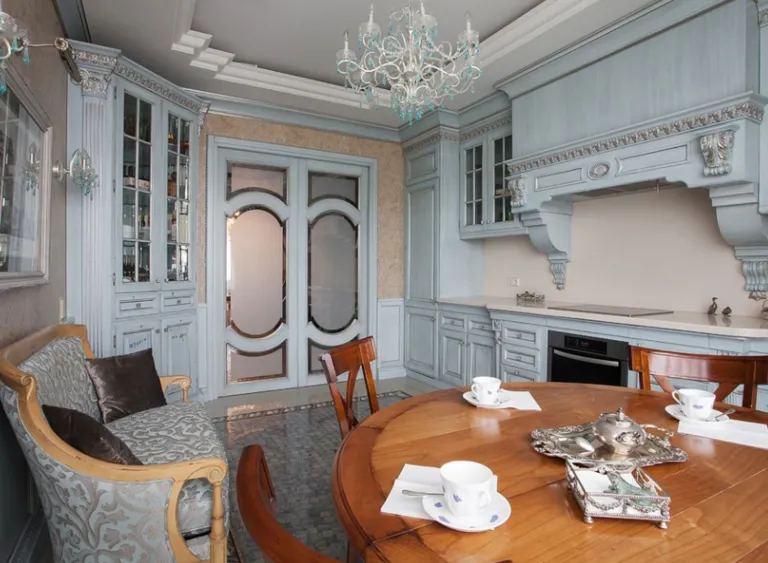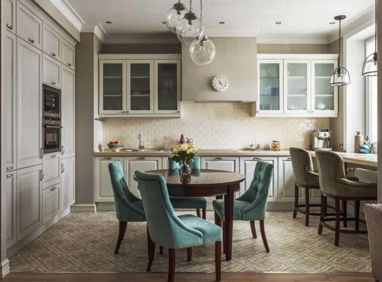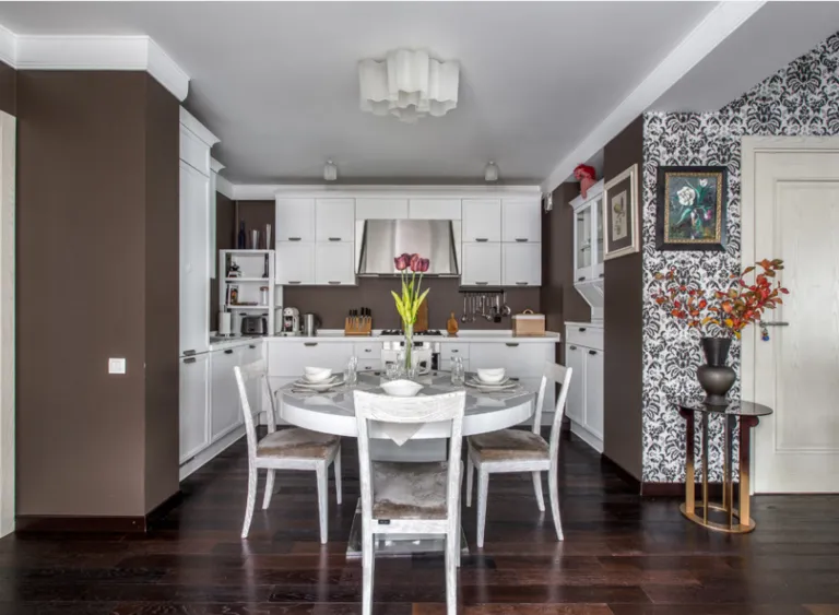 Смежная с столовой: Если у вас есть отдельная столовая, вы можете разместить кухню рядом с ней. Это удобно для передачи приготовленной пищи на стол и облегчает организацию обедов и ужинов.