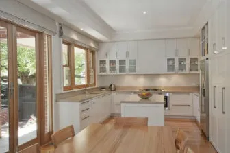 Кухня с выходом на террасу — это просто мечта! Какие особенности тут могут быть? Ничего особого, кроме того, что вам нужно думать о том, как выглядит внутреннее помещение с самой террасы. Это касается домов, где окна, выходящие на террасу почти в пол.