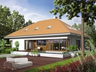 Крыша, протянутая над пристроенным гаражом, не всегда выглядит обособленно. Если спроектировать одноэтажный дом так, чтобы гараж являлся его продолжением, получится сделать крышу объединяющим элементом. В этом случае и мансарда станет больше, в особенности если была выбрана четырехскатная или полувальмовая крыша. Новоявленное пространство может использоваться владельцами по своему усмотрению, однако ту часть мансарды, которая находится прямо над гаражом, использовать в качестве места для постоянного проживания крайне не рекомендуется.