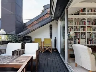 Переоборудование мансарды в террасу – интересная затея. В этом случае необходимо будет обеспечить максимальный доступ света в помещение, используя для этого панорамные окна. Они должны быть не только в торцевых частях, но и в крыше.