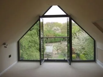 В данном случае на мансарде над эркером используются полностью остекленные стены, которые открывают обзор на все окружающее пространство.