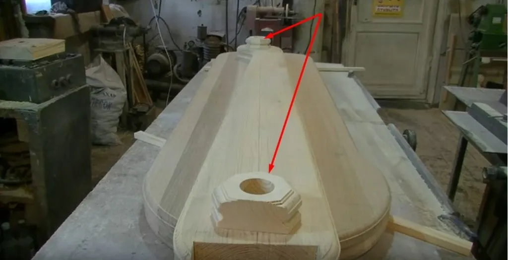 Кладем лист на пол, отмечаем центр листа и проводим ось. Чуть выше нижнего края (на пару сантиметров) на отметке вкручиваем саморез и привязываем к нему шнур, на другом конце которого в петлю продет карандаш. Это позволит вычертить идеальный радиус и форму арки. Определившись с радиусом, проводим линию карандашом, держа шнур в натяг. Слишком крутой изгиб делать не стоит: могут возникнуть проблемы с монтажом арки.