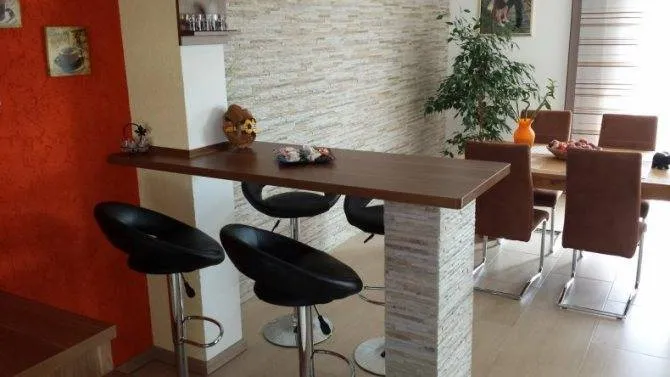 У этого варианта барной стойки есть минус: габаритность, поэтому подойдет далеко не для всех помещений.