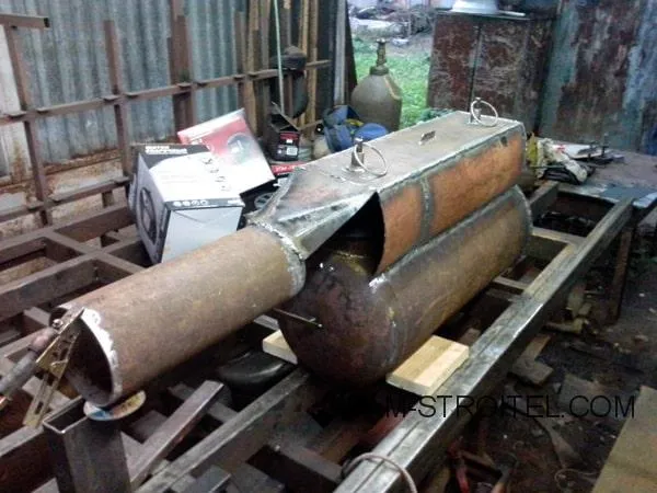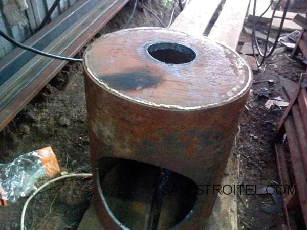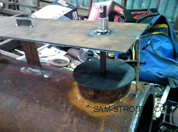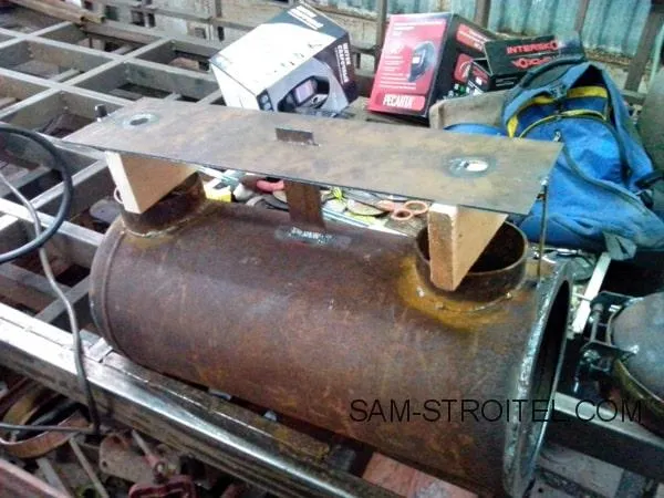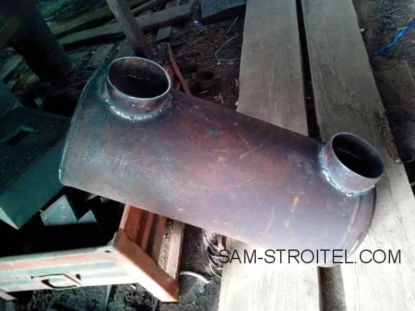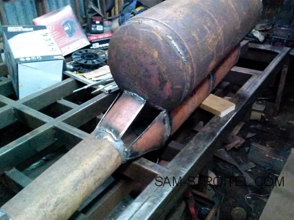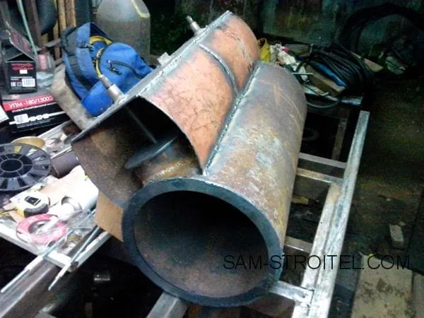 Для экономии листового металла, коробка выхода газов из колпака, частично сварена из боковой цилиндрической стенки баллона.