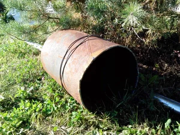 На металлоприемке была найдена и выкуплена удачная (как мне на тот момент казалось) заготовка, отрезок спирально-шовной трубы 430 мм, с уже вваренной заглушкой на одном торце. То есть, грубо говоря, «стаканчик», весом 65 кг: