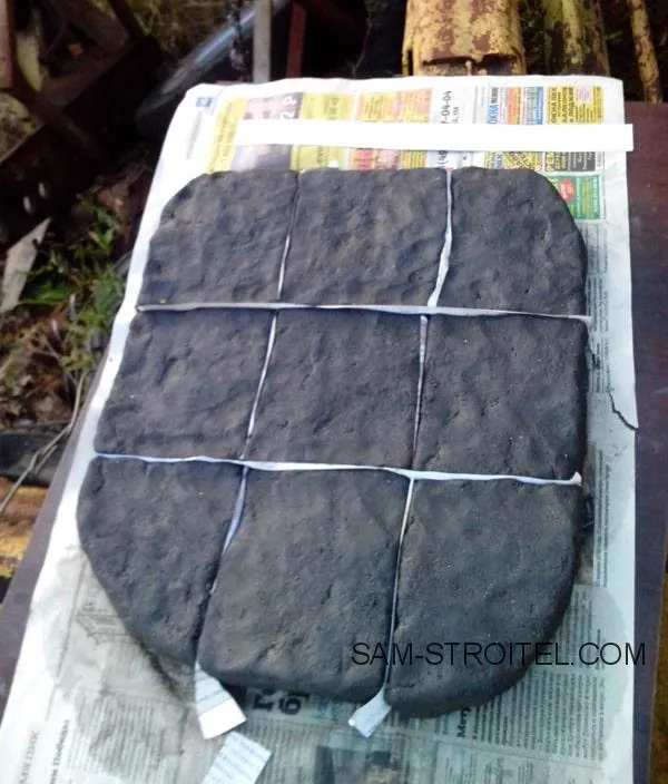 Поверхность пода выстлана шамотом. Выпросил у знакомого скульптора пару килограм настоящего шамота, вылепил блин. Разрезал его на секции (иначе все равно потрескается), высушил: