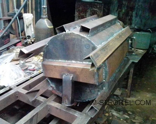 Были вдумчиво выкурены все темы этого форума про сварные отопительные печи, и ряд других материалов про теорию печей длительного горения. Попытался реализовать разом все интересные фишки, о которых узнал.