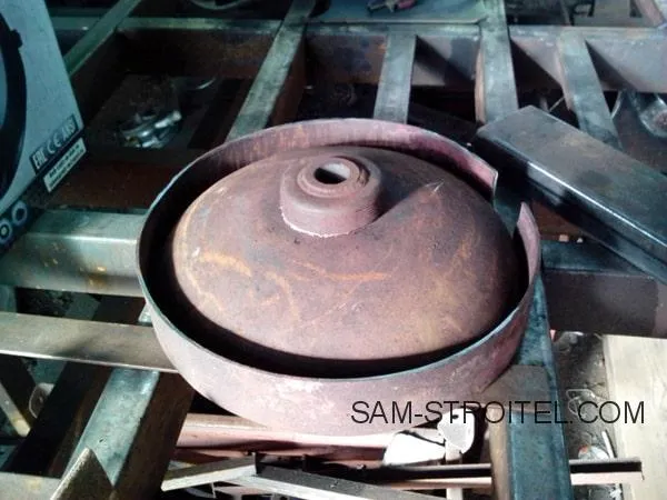 И со всех сторон колпака, наваривается ежик-радиатор из полосы