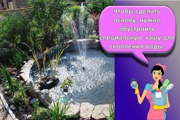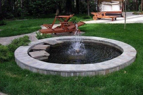 Можно обойтись и без пластиковой чаши. Есть два других варианта: сделать резервуар из монолитного бетона. В этом случае можно сделать фонтан с бортиками. Процесс длительный и затратный, да еще о гидроизоляции необходимо побеспокоится.