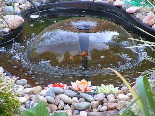 С этой целью в водоем необходимо вывести трубу. Вода, поступающая в нее под напором, будет создавать струю, форму которой можно изменять при помощи разных насадок. Использованная жидкость может применяться для полива или стекать в колодец.