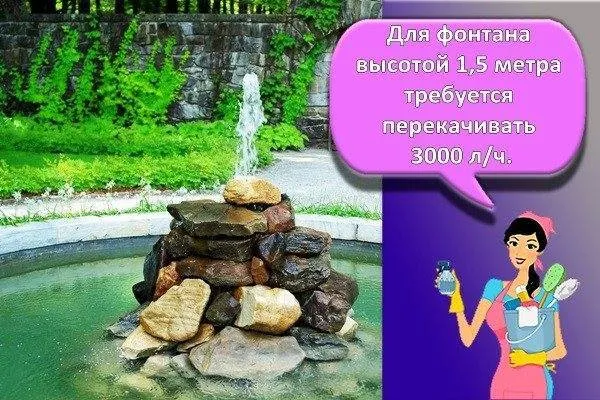 Для фонтана высотой 1,5 метра требуется оборудование, способное перекачивать 3000 л/ч.