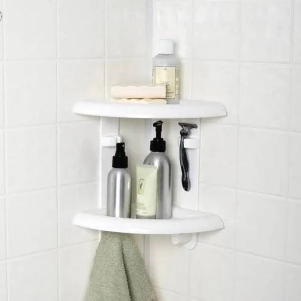 Всем, кто любит простоту и не хочет заморачиваться долгосрочными решениями, рекомендую полочки на липучках. Липучки крепятся к поверхности кафеля и на этом все манипуляции закончены. Рассчитаны такие приспособления на небольшие пузырьки и флакончики, банные губки и щеточки.