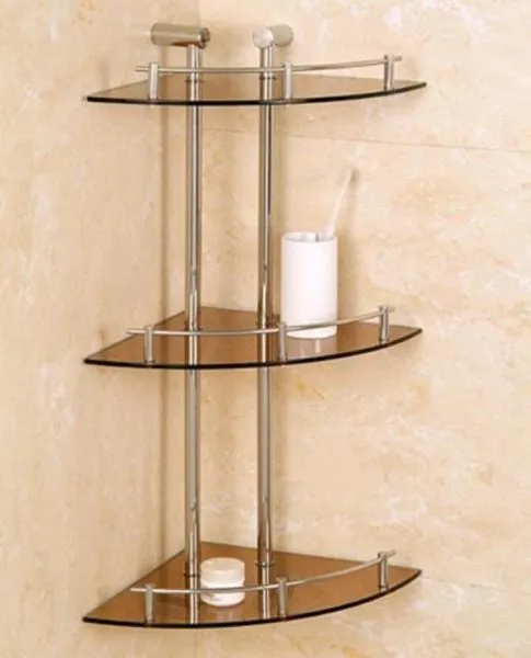Варианты исполнения угловых полок включают такие материалы, как: пластик, стекло, дерево, нержавеющая сталь и др. Такие конструкции достаточно прочные и рассчитаны под сравнительно тяжелые предметы.