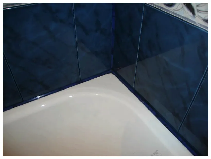 Плиточное покрытие при этом способе герметизации укладывается под и над бортами ванны, примыкающими к стене, что полностью устраняет зазоры. Стыки между плитками, над и под ними заполняются затирочной смесью.