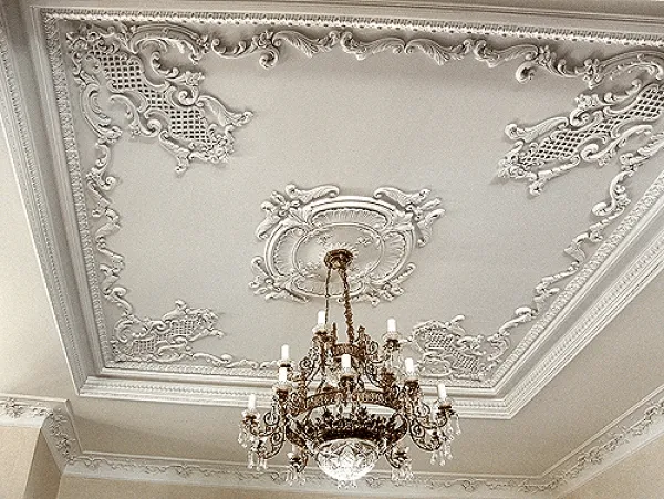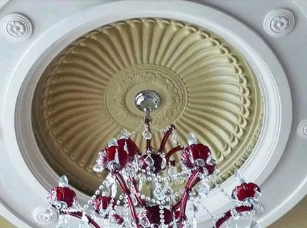 Они отличаются от традиционных вариаций по нескольким критериям: форме, материалам, фактуре и т. д. В общем же, все подобные предметы для потолка делают профильными и лепными, декорированными простым плоским рисунком или орнаментальным рельефом.
