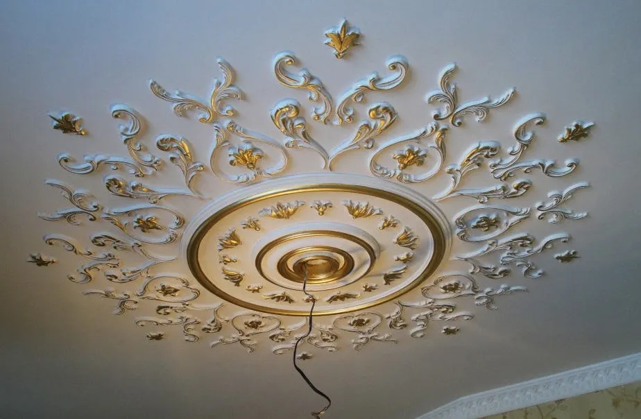 На заметку! Чтобы украсить свой дом, выберите изделия с затейливыми узорами. Например, декоративные розетки с орнаментом в виде листьев и цветов на потолке хорошо подчеркнут стены, отделанные цветочными обоями.