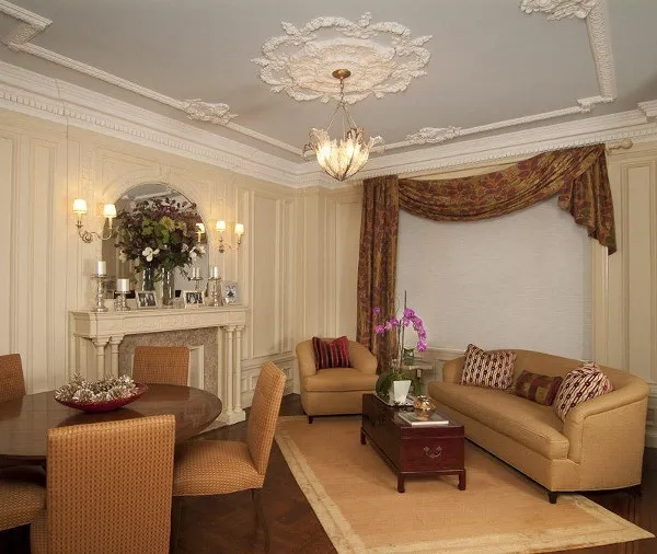 Вместе с грамотно подобранными молдингами и карнизами потолочная розетка способна придать ремонту завершенность, выгодно подчеркнув аристократичность стиля помещения