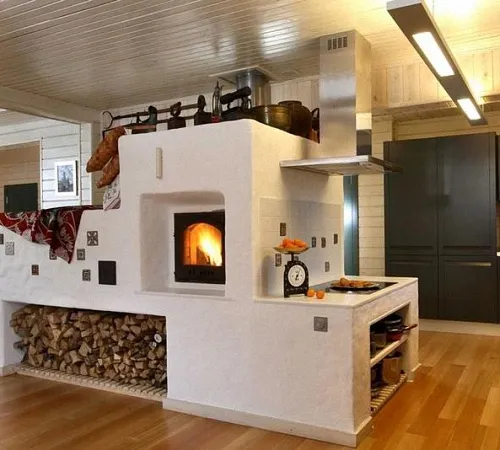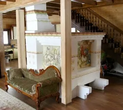 Данный, вышеприведенный вариант печи с легкостью отапливает помещение площадью в тридцать квадратов. Чаще всего, печь располагали в угловой части помещений, которая находилась рядом с дверью.