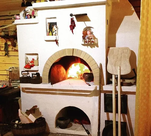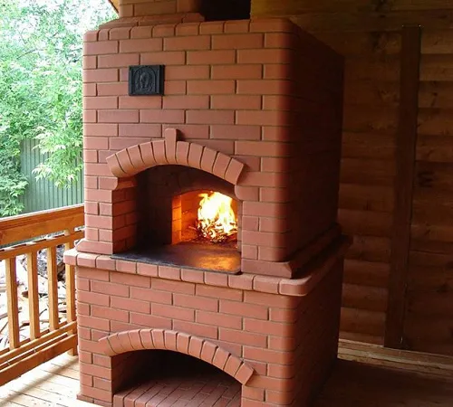 3. Мини русские печи, устанавливаемые как на улице, так и в помещении. Главная их функция — эстетически привлекательный внешний вид и приготовление пищи.