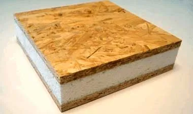 Строительные плиты состоят из трех слоев. Внутренний слой – утеплитель, отвечающий за теплоизоляционные качества панели, два внешних слоя – жесткий облицовочный материал, обеспечивающий прочностные характеристики. Между собой элементы скрепляют клеем.