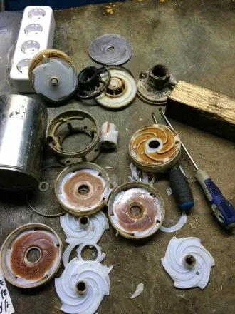 Прокачка воды в глубинных насосах происходит за счёт нескольких крыльчаток, последовательно насаженных на вал. Их нужно снять, запомнив порядок сборки, а затем очистить от грязи вместе с внутренней поверхностью гильзы, сеткой и прочими элементами, контактирующими с водой.