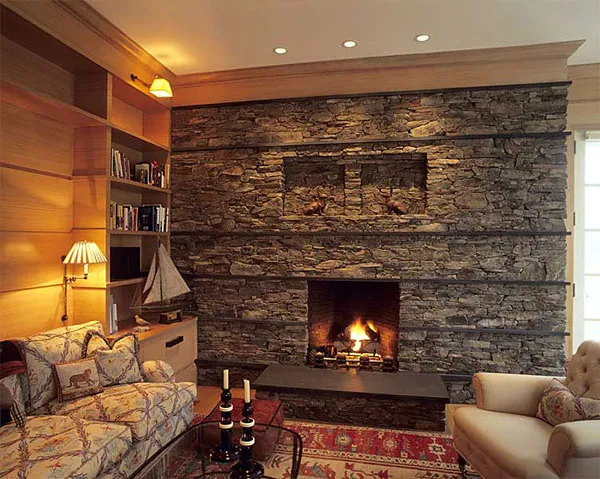 Декоративный камень очень тонкий, он не «крадет» пространство комнаты.