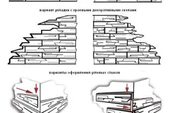 Для придания углам эстетичного вида, камень подрезается при помощи стусла и ножовки под углом в 45°. Для заполнения швов затиркой можно использовать специальный мешочек или кондитерский шприц.