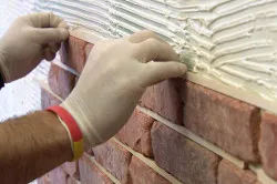 Замешивать сразу много клея не нужно. Он быстро схватывается и становится непригодным для работы. Наносить клей нужно при помощи гребенчатого шпателя. После этого необходимо убрать излишки и плотно прижать фрагмент к поверхности стены. Клеевой раствор можно наносить как на облицовываемую поверхность, так и на сам камень. Выступившие излишки клея следует сразу удалить влажной губкой.