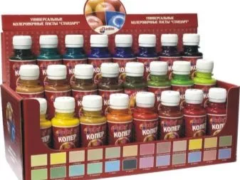 Упаковка колера различна: можно приобрести продукт в специальных тюбиках, пластиковых бутылках и пузырьках. Хранить материал независимо от его вида нужно в темном месте, куда не будут попадать прямые солнечные лучи. При этом температура должна быть комнатной. Разделить рассматриваемый материал можно на 2 основные группы: неорганические и органические колеры.