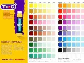 Палитра цветов колеров каждого вида разнообразна. У каждой фирмы свои особенности. Говоря о порошковом варианте, следует отметить, что имеется всего несколько возможных оттенков. Колер в виде пасты характеризуется широкой линией цветов, которые позволят вам воплотить любую дизайнерскую задумку в реальность. Готовые к использованию краски можно приобрести в различных цветах, однако их не так много для того, чтобы позволить себе экспериментировать.