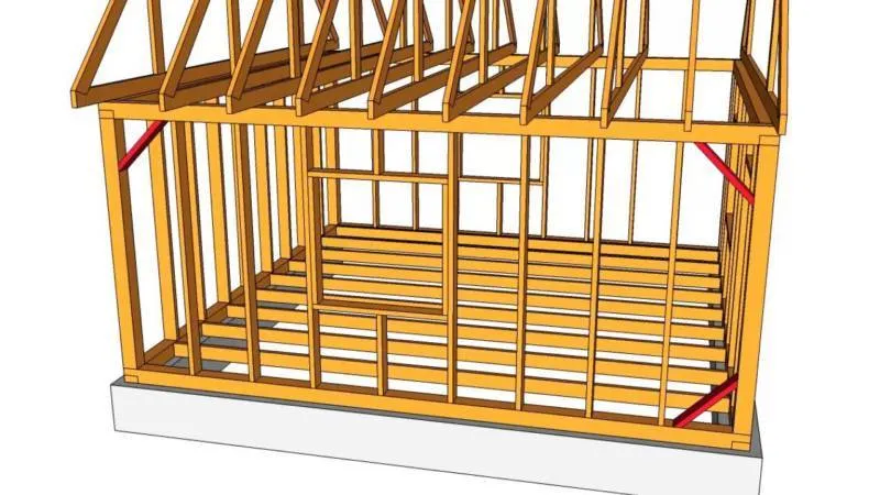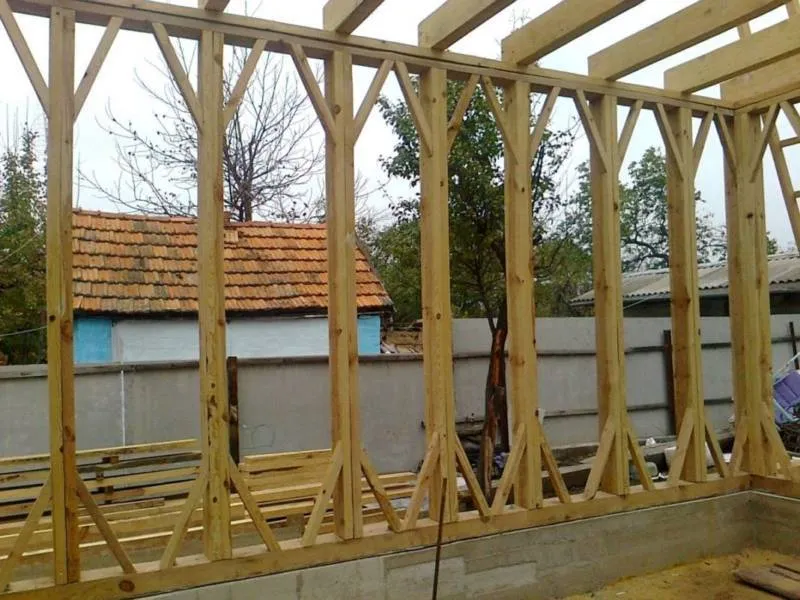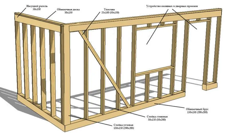 - Для повышения надёжности каркаса присоединяют наклонные доски или укосины.