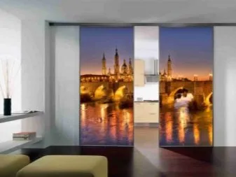 Существуют модели дверей-купе, в которых стекла покрыты фотопечатью (изображение берут в каталогах либо представляют свой эскиз). Выбор зависит от ваших пожеланий и от личных финансовых возможностей. Во многих случаях короб продлевают до угла стены, хотя его можно делать и строго на длину двери, это одинаково изящное решение. Еще практикуется расположение коробов по периметру потолка, когда им прикрывают карниз для штор. А вот игнорировать этот элемент не имеет смысла, так вы сделаете только хуже для дизайна.