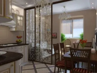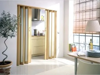 Раздвигающуюся «гармошку» можно считать самым доступным типом купе; не следует путать современные образцы их с низкокачественными поделками, широко устанавливавшимися несколько лет назад. В квартире типа студия дверь купе разделяет часто кухонную зону и гостиную, одновременно подчеркивая их неуловимую слитность. Раздвижные радиусные конструкции отлично сочетаются с подвесным округлым потолком. Но ставить их можно лишь при официальном разрешении надзорных органов.