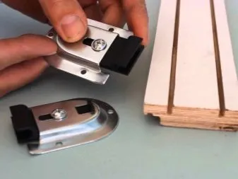 Верхние крепежи вводят в трек, чуть-чуть затягивают крепеж (чтобы дверь держалась, но не более), смотрят, не нужно ли регулировать механизм по высоте. Убедитесь, что треки расположены в одной плоскости, поскольку малейшая разница между ними приведет к самопроизвольному открытию двери. Когда регулировка окончена, крепят стопоры, в верхней и нижней частях ставят по одному магниту и по одному железному диску с потайным гнездом под саморез.
