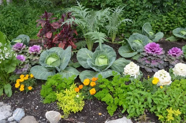 Создайте декоративный огород (овощи, зелень и цветы на одной грядке)