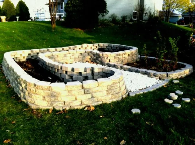 Многоярусные гряды сложной формы хороши как дизайнерский элемент, однако довольно прихотливы в вопросах ухода и обслуживания. Материал для них нужно выбирать качественный и долговечный, а вот вырастить какие-то крупные овощи в таких сложно – маловато места. Соорудить такую конструкцию лучше всего для пряных трав или аптекарского огородика.