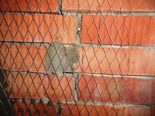 Если перепад плоскости большой, процесс выравнивания следует разделить на несколько этапов. При обнаружении сколов и пустот на кирпичной кладке стоит выполнить укрепление поверхности с помощью армирующей сетки, а в местах угловых элементов зафиксировать перфорированные или обычные металлические уголки.Отштукатуренную поверхность снова следует обработать грунтовкой, а начинать дальнейшие работы можно только после её окончательной просушки.