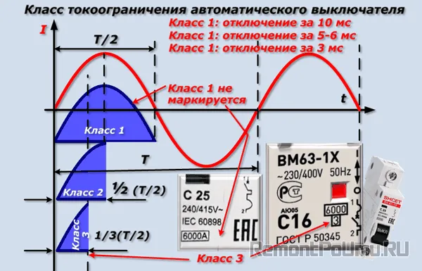 Чем скорее отсекается авария, тем меньше вреда она способна нанести вашему оборудованию. Этот фактор учитывается классом токоограничения, характеризуется временем срабатывания.