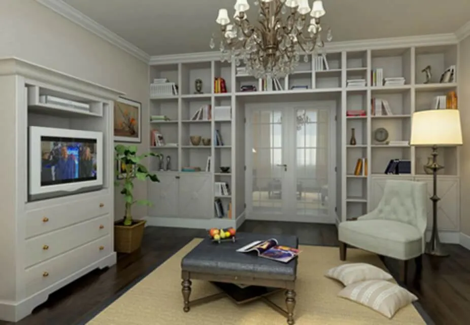 - Домашняя библиотека уместится на полках мебели, расположенной в гостиной или кабинете.