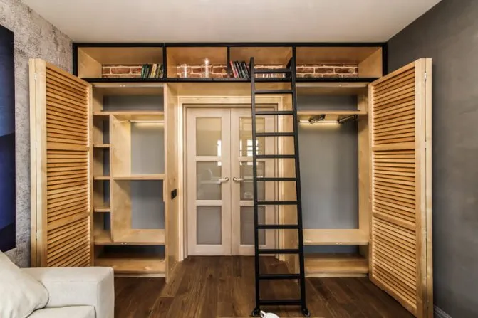 - Большая высота, достигающая потолка. Верхняя часть идеально подходит для размещения крупных предметов, которые используются не часто.