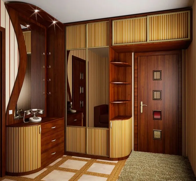 - Если шкаф вокруг двери устанавливается в зале, то необходимо предусмотреть открытые полки для красивых предметов, коллекций и др.