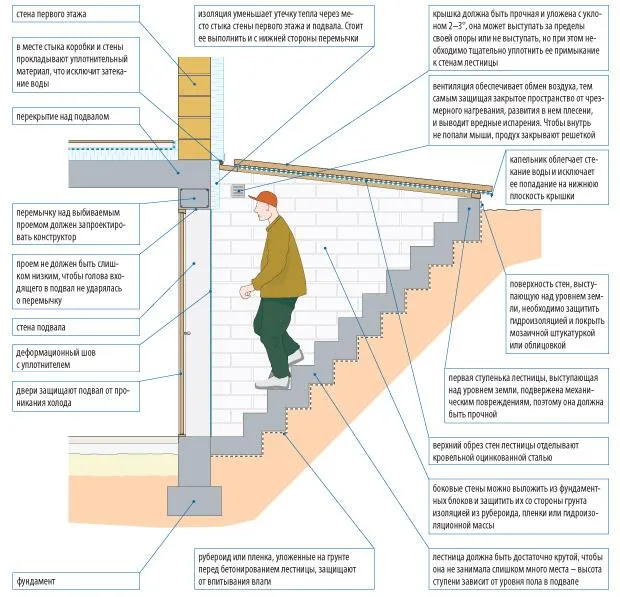 Как сделать лестницу в подвальное помещение для входа с улицы