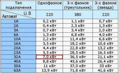 В расчетах мощности трехфазной сети удобно пользоваться таблицами мощности с учетом типа подключения.