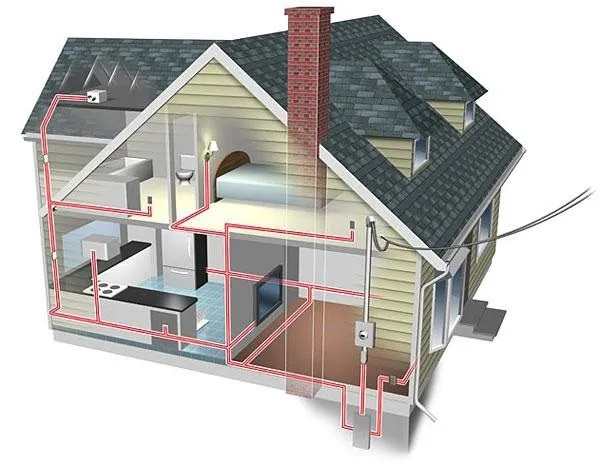 Ввод электричества от опоры в дом осуществляет специализированная организация. Домовладельцу предстоит позаботиться об установке автомата ввода, счетчика, распределительного щитка и осуществить прокладку электропроводки внутри дома, подключение розеток, выключателей, светильников, монтаж контура заземления.