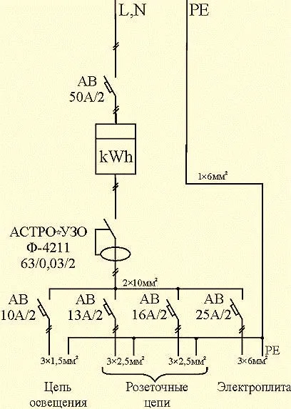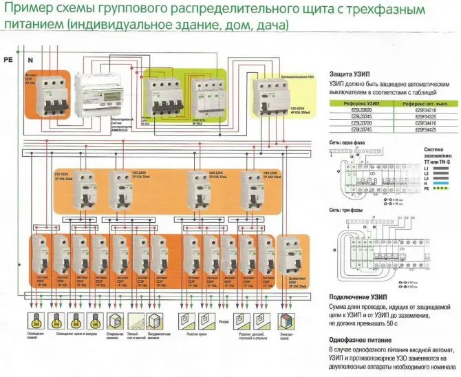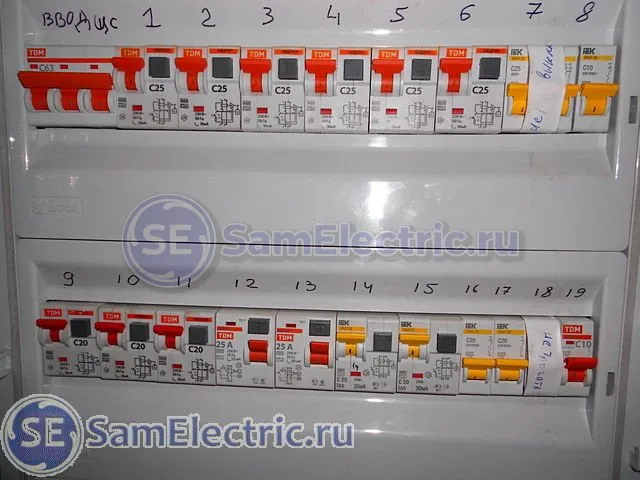 На входе в дом всегда есть три фазы, которые распределяются в комплекте фаза-нуль. Пары питают равные по мощности группы нагрузок. Если на жилой дом положено 15 кВт мощности, то на каждую группу приходится не больше 5 кВт. При несоблюдении правила автоматические выключатели будут срабатывать при перегрузке линии.