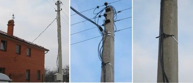 - при воздушном подсоединении кабель не провисает над дорогой ниже 6 м, над тротуарами — ниже 3,5 м;