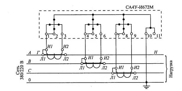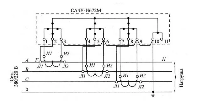 Схемы подключения счетчика через трансформаторы тока